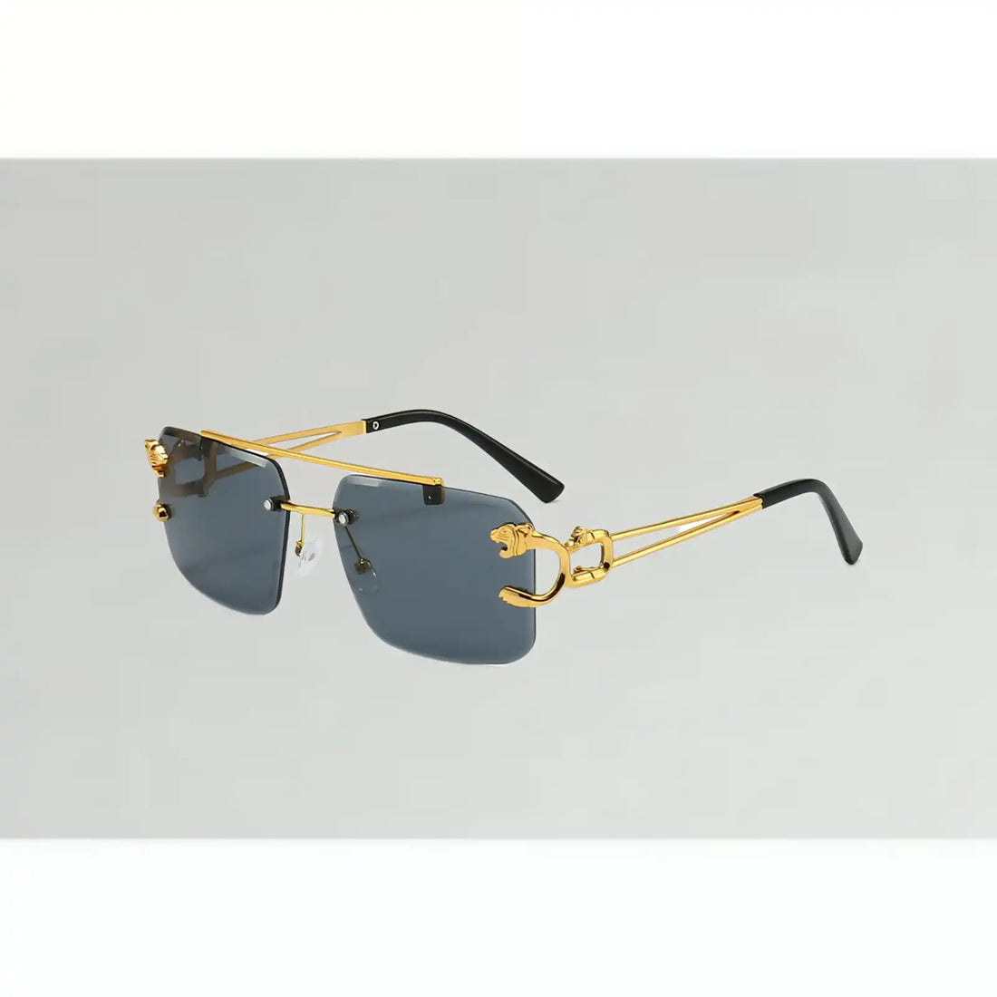 Luxury Rimless Panther Sunglasses for Men in Pakistan – Gold Metal Frame with Black Lenses