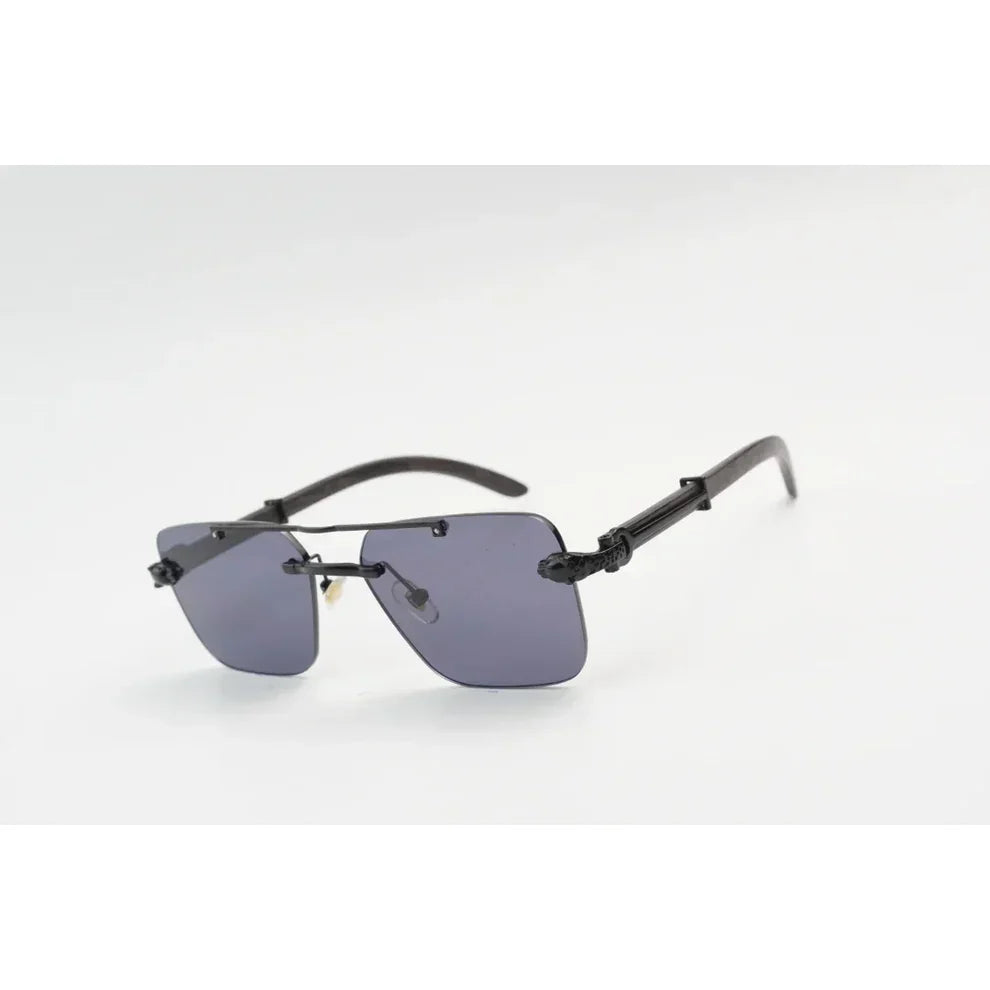 Rimless Rectangle Sunglasses in Pakistan | Wooden Texture Metal Frame