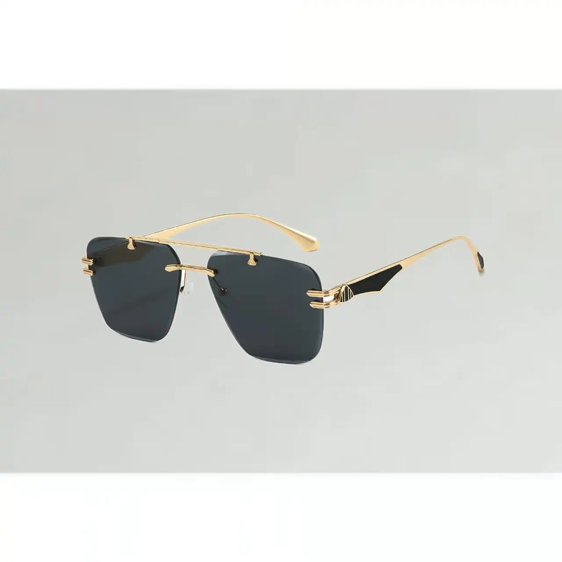 Rimless Black Lens Sunglasses for Men in Pakistan – Luxury Gold Metal Frame