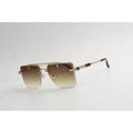 R96 Extra Wide Rimless Square Sunglasses in Pakistan – Double Bridge Golden Metal Design