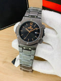 The Reward men’s luxury full black watch features a sleek black dial paired with a matching black stainless steel bracelet, creating a bold and modern all-black look.