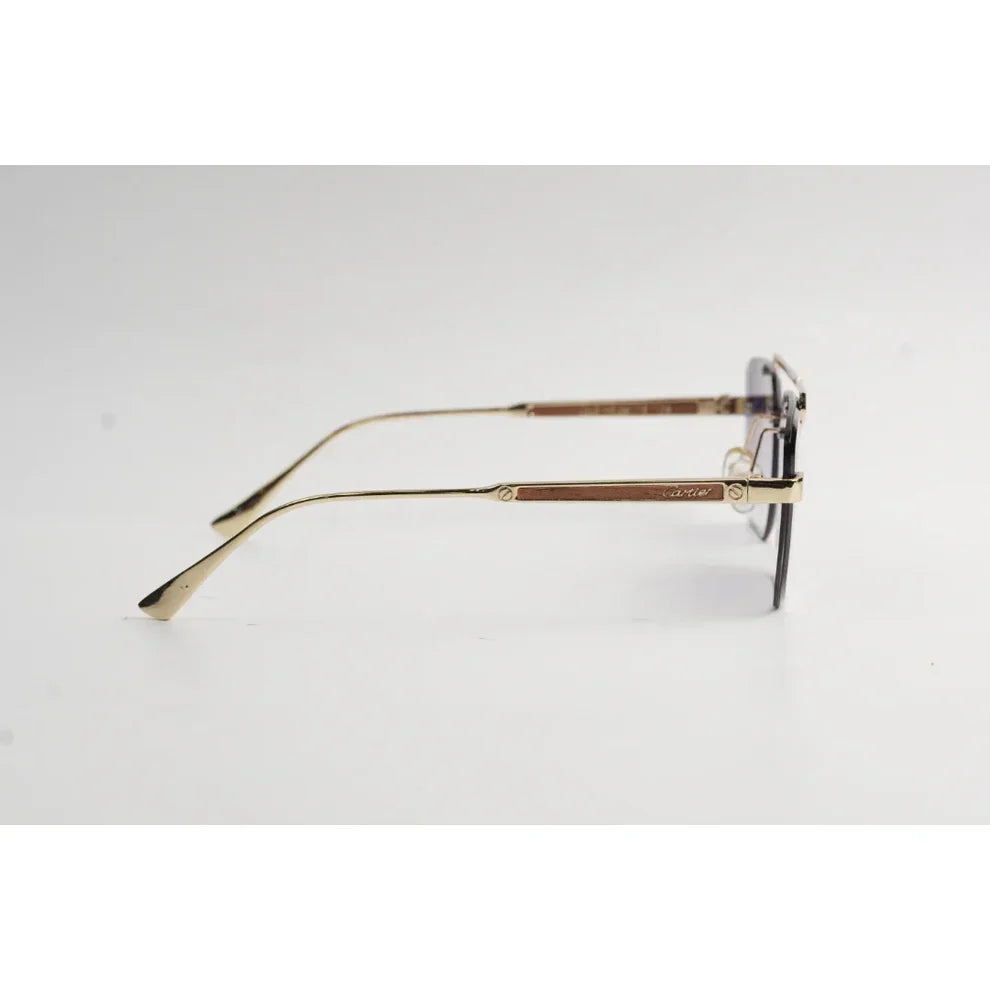 These RM90 extra wide double bridge rimless rectangle sunglasses are designed for a bold and modern eyewear look in Pakistan. Built with a golden metal frame and subtle wooden texture, they offer durability with a premium finish.
